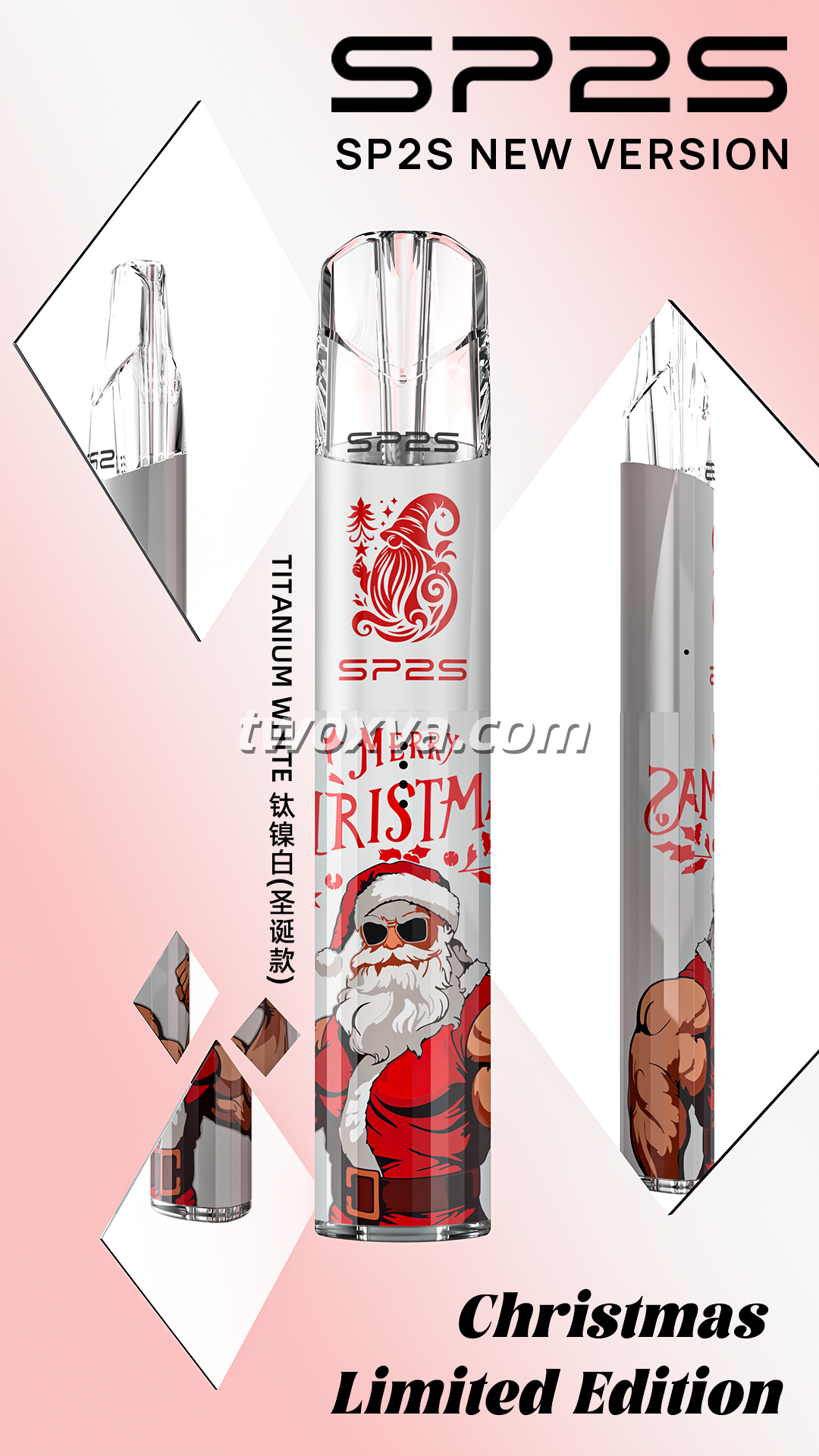 SP2 鈦主機聖誕節限定版是 SP2S 系列推出的節日限定電子煙主機,採用 鈦合金機身與聖誕節限定設計,在保持 SP2 系列穩定輸出的同時,加入節慶元素,使主機更具質感與收藏價值。